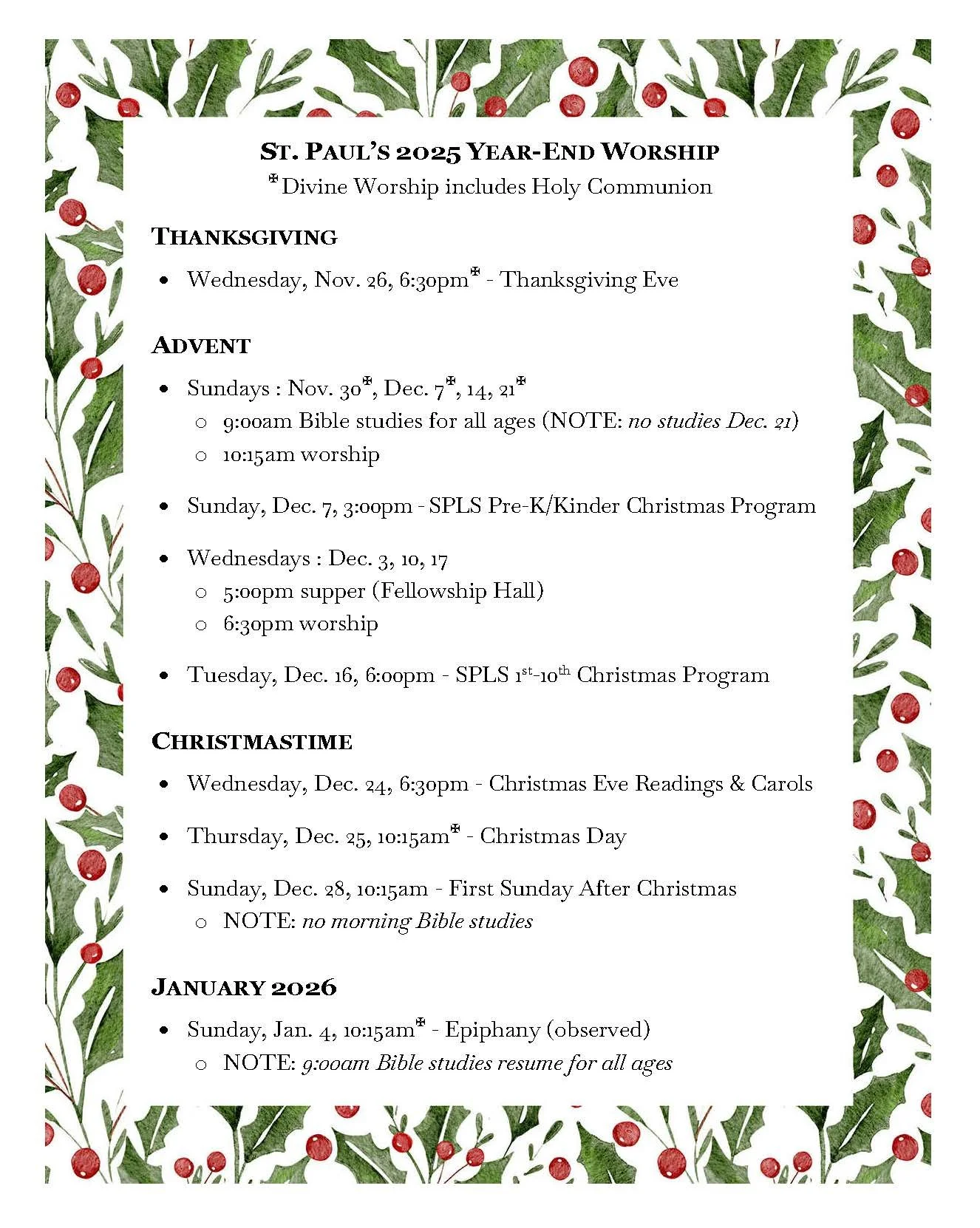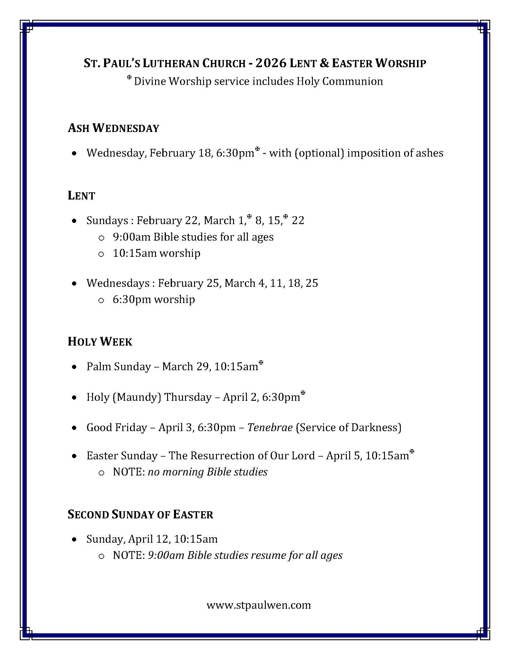 Church Office: 509-662-8790 : office@stpaulwen.com : Monday - Friday, 9:00 a.m. - 3:00 p.m.